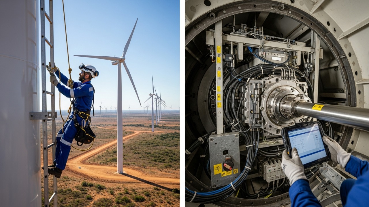 Serviços de acesso por corda em torres eólicas, seguindo os padrões, permitem inspeções e reparos rápidos em pás e torres sem a necessidade de plataformas elevatórias ou gruas.